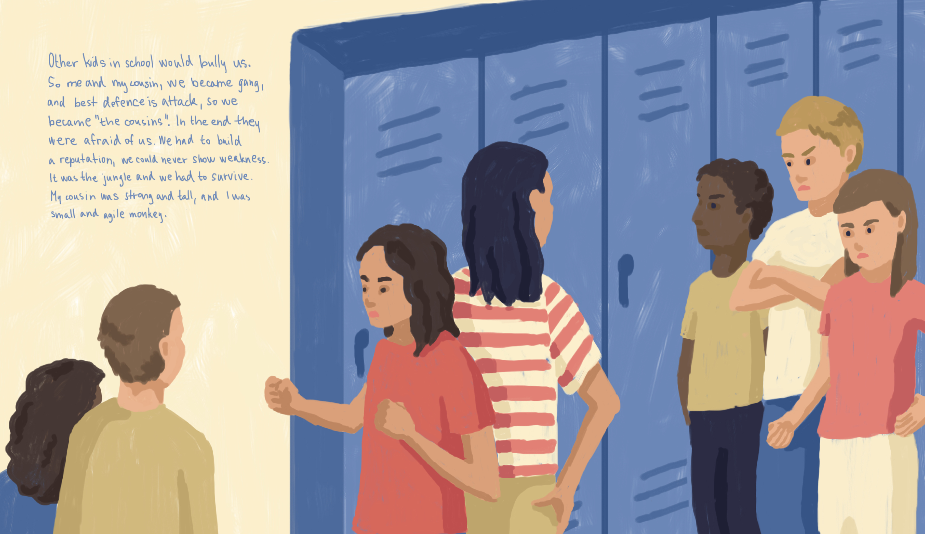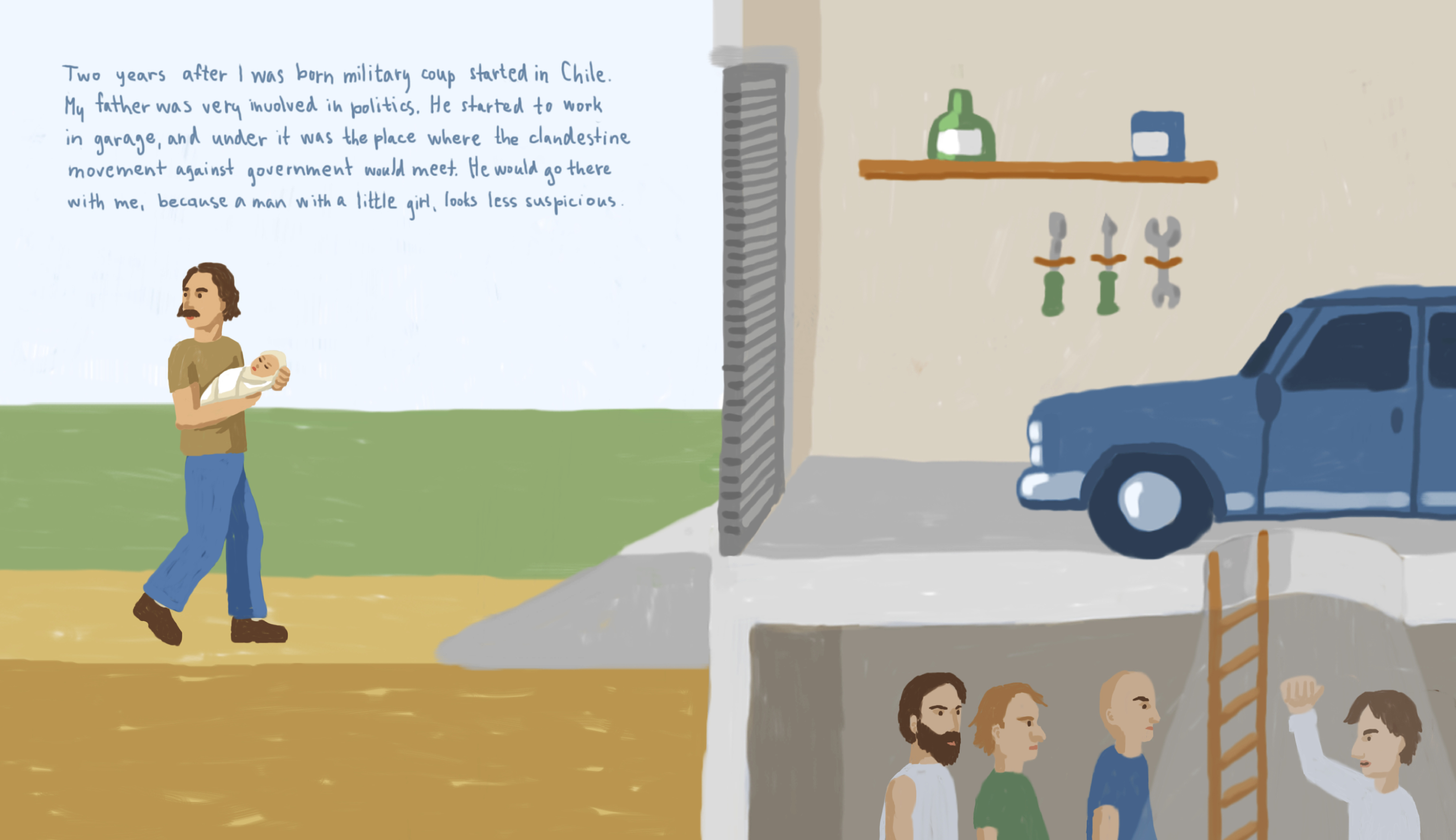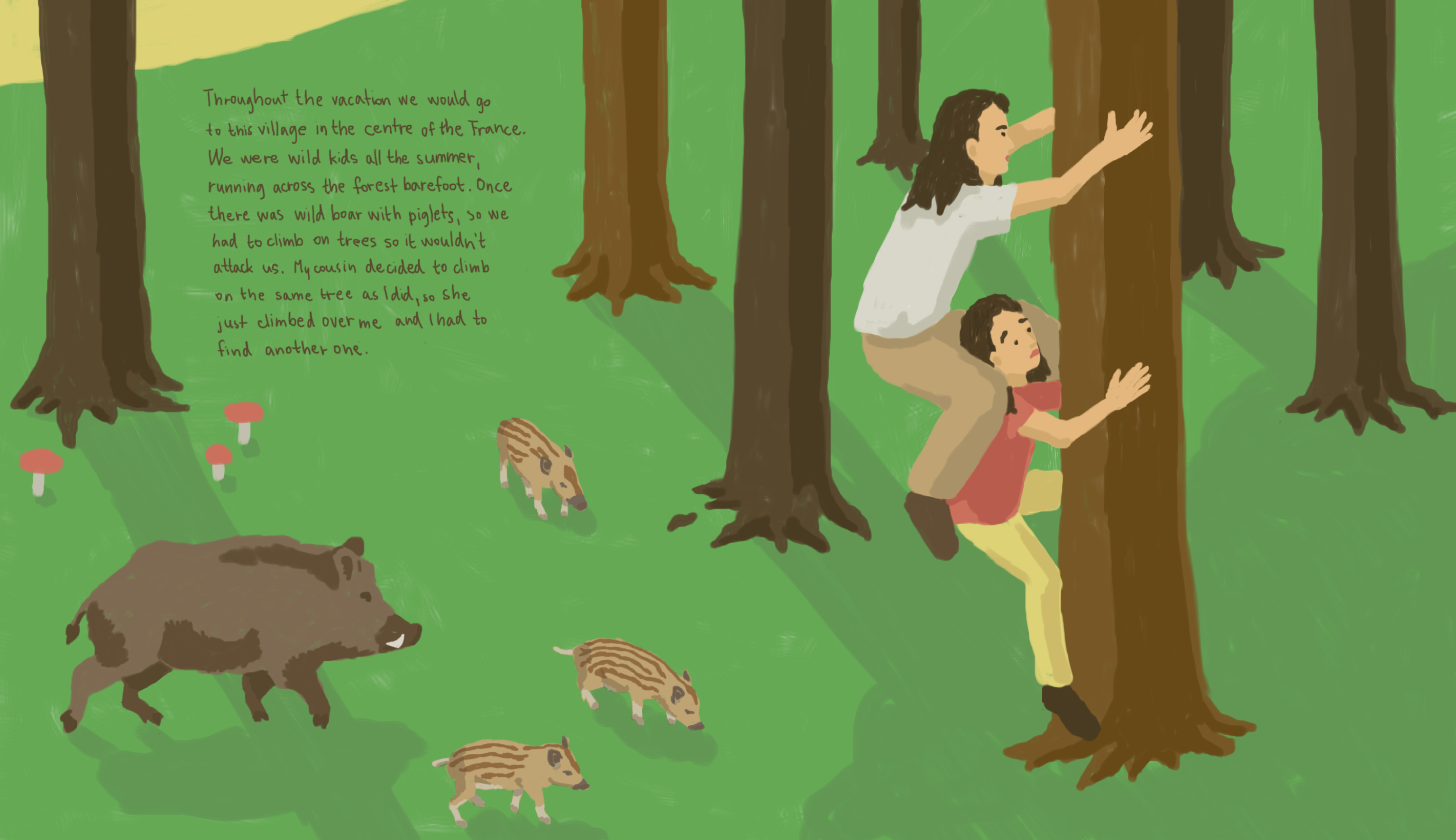 The illustrated book about childhood of a woman with turbulent life is full of documentary illustrations. The text is handwritten and the design of the title is inspired by writtings from her school notebooks.