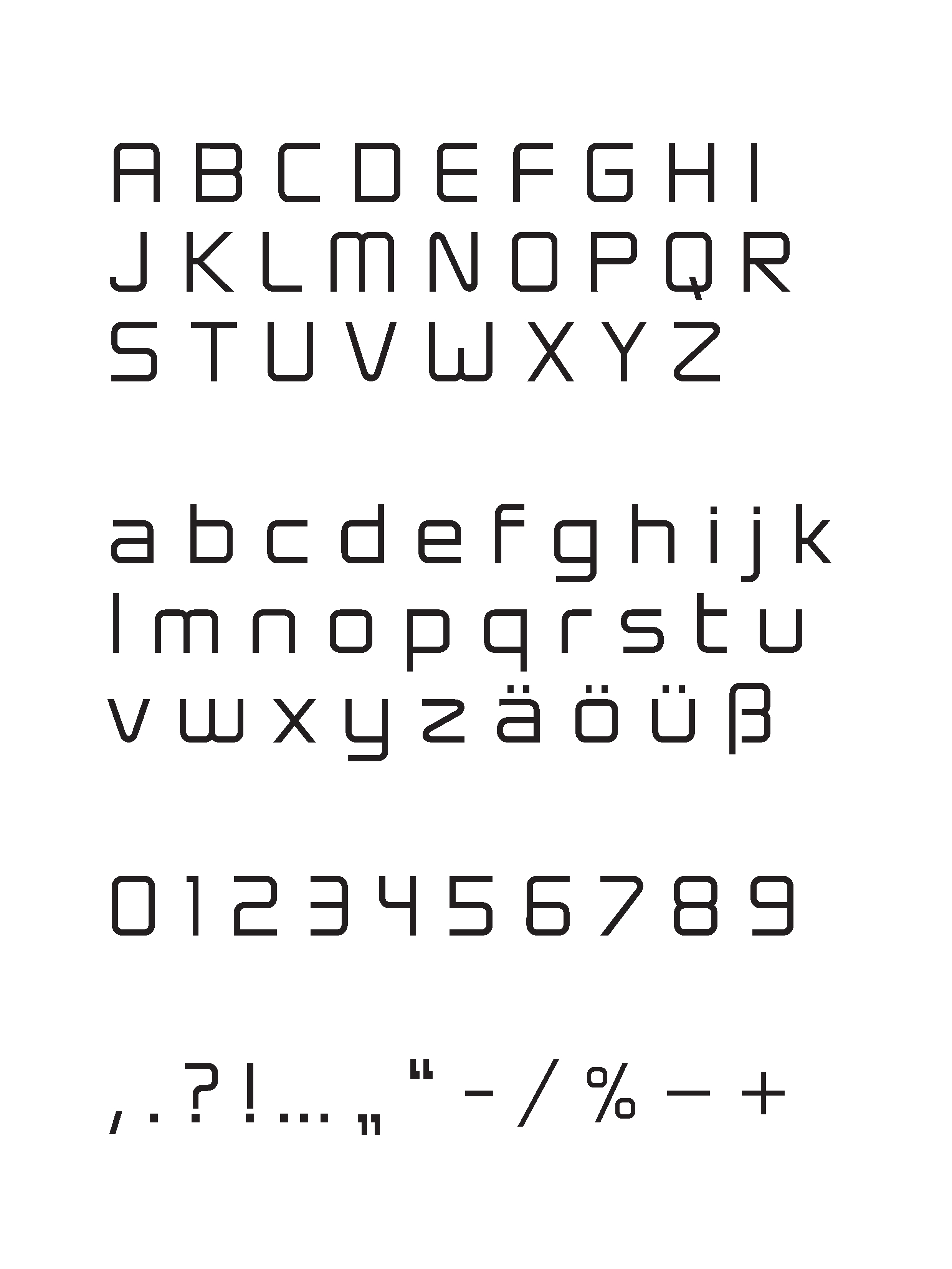 The font is based upon the logo of the company, constructed on the geometric grid.